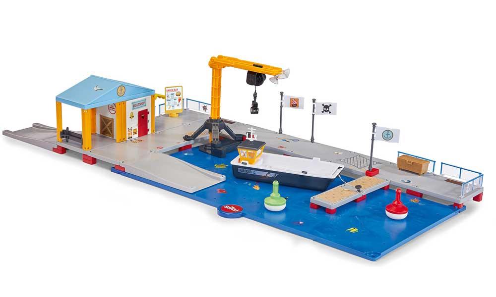 Die SIKUWORLD Anlegestelle lässt sich hervorragend in bestehende SIKU-Spielwelten integrieren, indem sie als zentraler Knotenpunkt für Wasserfahrzeuge und Landfahrzeuge dient. Spieler können die Anlegestelle mit anderen SIKU-Modellen wie Lkw, Bussen und Autos kombinieren, um lebendige Szenarien zu schaffen. Eine kreative Spielidee könnte sein, eine Hafenstadt zu gestalten, in der die Anlegestelle als Umschlagplatz für Waren fungiert. Kinder könnten verschiedene Schiffe beladen und entladen, während Lkw die Güter zum nächsten Ziel transportieren. Zusätzlich könnte man eine Rettungsaktion inszenieren, bei der ein Schiff in Not ist und die Spieler mit einem SIKU-Rettungsboot zur Hilfe eilen. Auch die Kombination mit anderen SIKU-Weltmodulen, wie Straßen oder Bahnhöfen, eröffnet zahlreiche Möglichkeiten. Man könnte beispielsweise eine Verbindung zwischen der Anlegestelle und einem Bahnhof schaffen, um den Transport von Passagieren und Fracht zu simulieren. Ein weiteres kreatives Szenario könnte ein Fischerlebnis sein, bei dem die Kinder mit kleinen SIKU-Fischern und Booten angeln gehen. Die Anlegestelle könnte auch als Ausgangspunkt für Abenteuer auf hoher See dienen, bei denen die Spieler imaginäre Reisen unternehmen und verschiedene Inseln entdecken. Die Integration der Anlegestelle fördert nicht nur die Kreativität, sondern auch das Rollenspiel und die Interaktion zwischen den verschiedenen Fahrzeugen und Figuren in der SIKU-Welt.